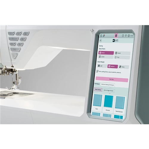 JoyOS ADVISOR™ erbjuder vägledning och stöd som du har nära till hands. Välj tygtyp och välj bland ett brett urval av tillgängliga sömnadstekniker. JoyOS ADVISOR™ ställer omedelbart in bästa stygnbredd, stygnlängd, trådspänning/portionering och pressarfotstryck för den teknik du har valt. Den innehåller också: Interaktiva handledningar, sömnadsinstruktioner, användarhandböcker och mycket mer.