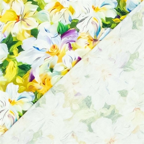 Med en bredd på 150 cm och en vikt på 200 gr/m2 är detta tyg perfekt för T-shirts och figursydda toppar.