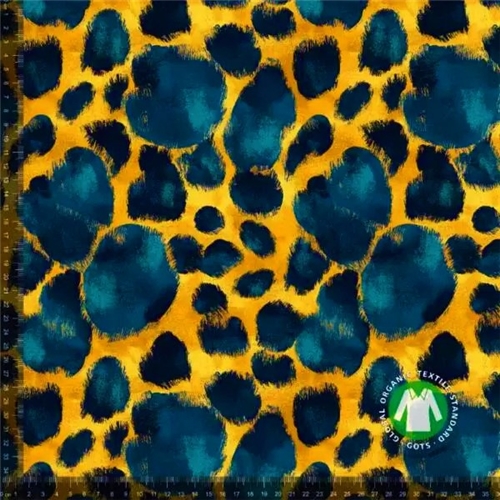 Hem » Tyger » Trikå » Abstrakt djurmönster Blått på gult
