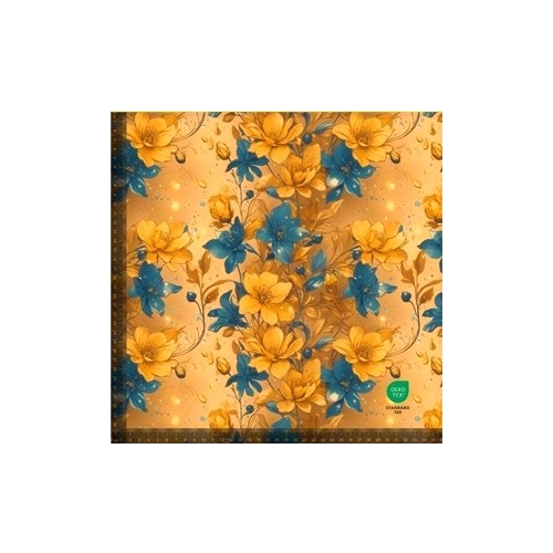 Hem » Tyger » Trikå » Bomullsjersey » Mönstrad Bomullsjersey » Blommor » Blå & Gula Blomster