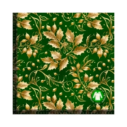 Hem » Tyger » Trikå » Järnek I Guld På Grön Bakgrund