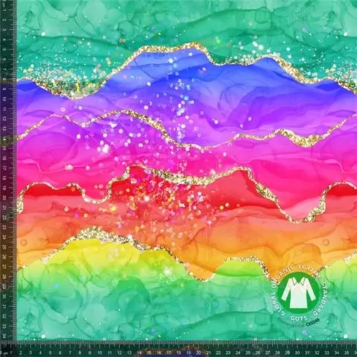 Hem » Tyger » Trikå » Regnbågsvågor med guld